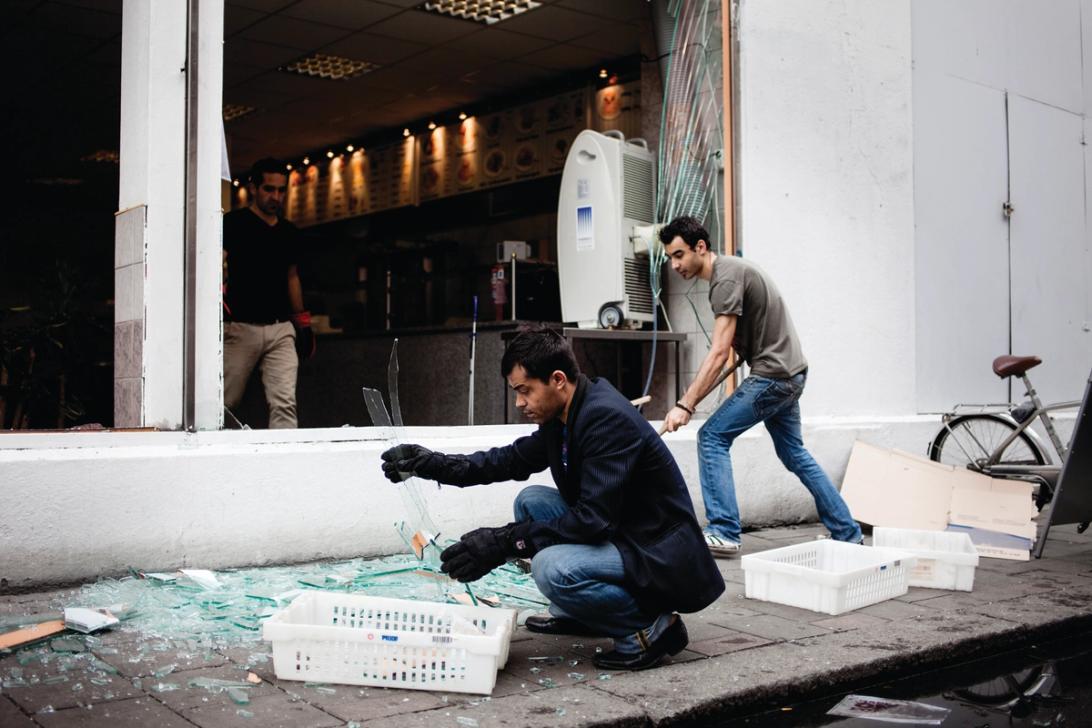 Tretten leirdeltakere i kafébygget blir drept av terroristen.